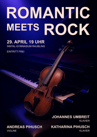 Zusammen mit Herrn Professor Johannes Umbreit von der Musikhochschule München bieten Andreas und Katharina Pihusch wieder einen spannenden Konzertabend, wenn sie am Mittwoch, dem 29. April 2026 um 19.00 Uhr in der Aula Johannes Brahms´ berühmtes romantisches Violinkonzert,
