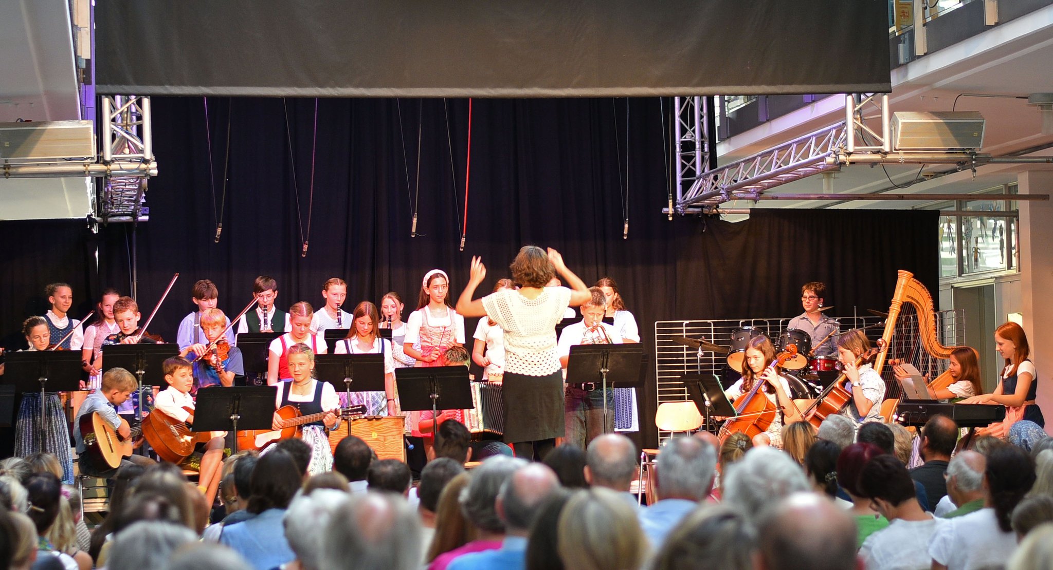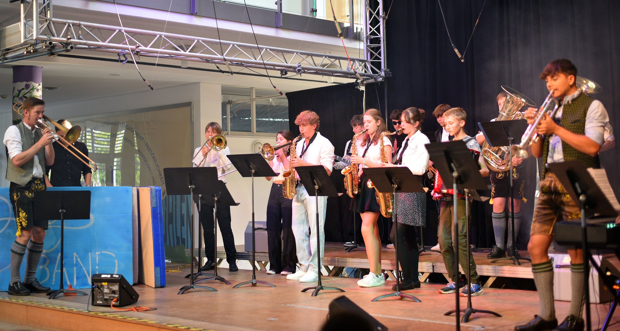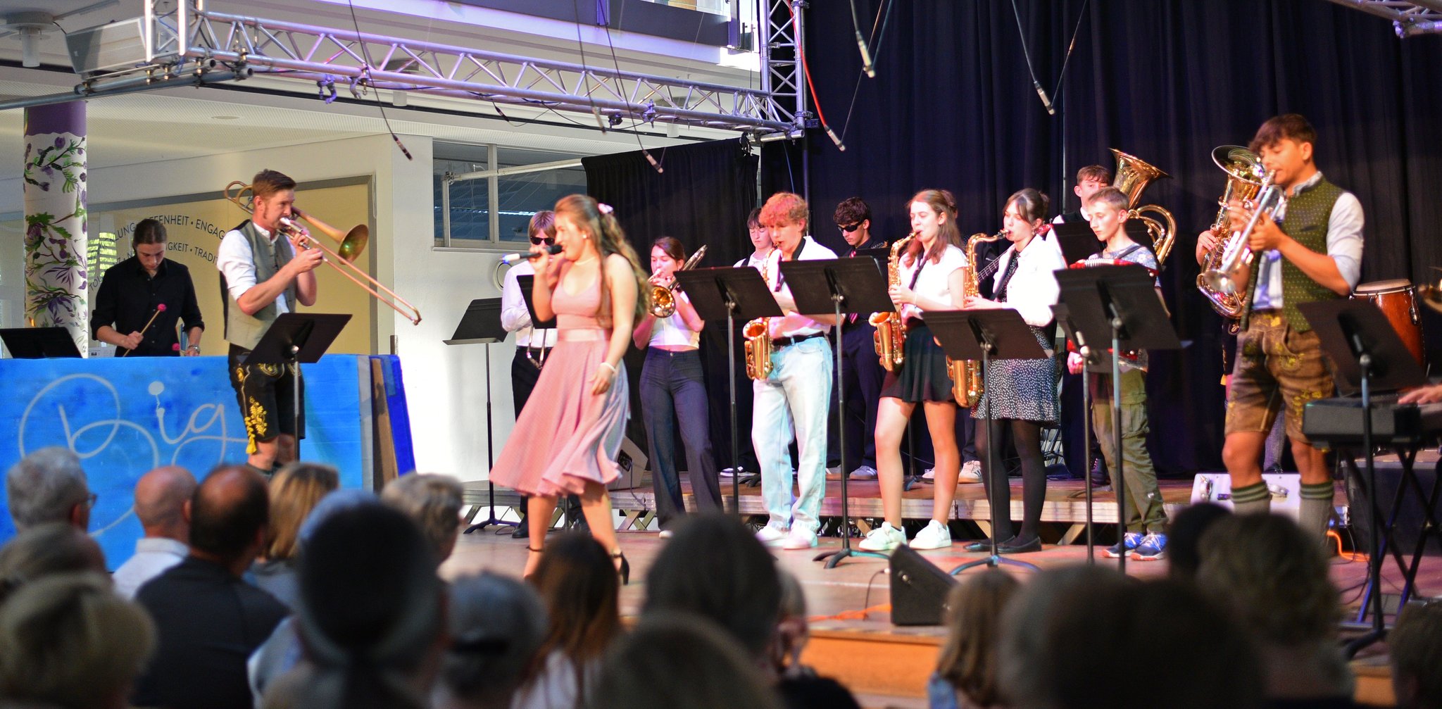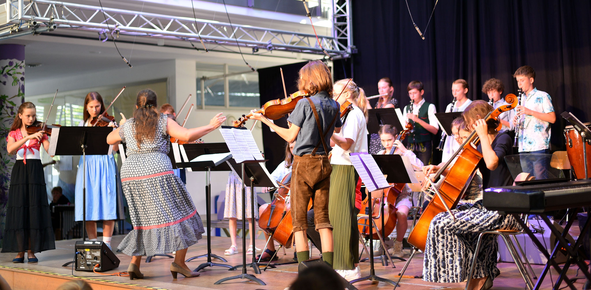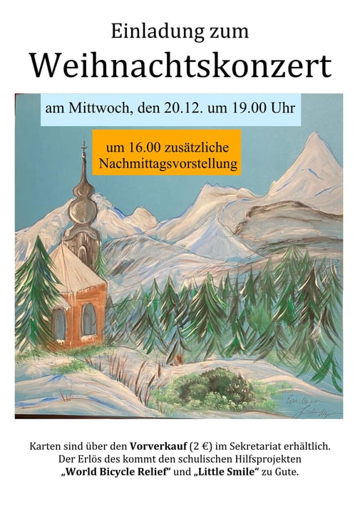 Musikalische Höhepunkte im Schuljahr sind natürlich die Weihnachts- und Sommerkonzerte, die jedes Jahr stattfinden und die in erster Linie von den Ensembles gestaltet werden. Mit dabei sind die Chöre und die Orchester (Unterstufe sowie Mittel- und Oberstufe) sowie die Big Band. Auch Solisten finden ihren Platz beim Konzert. In den Musikprobentagen, die in der Woche vor dem Konzert stattfinden, erhalten die Stücke den letzten Schliff.
